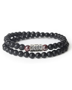 붉은 믿음 옴마니반메훔 무광 오닉스 최상급 경면주사 두줄 염주팔찌