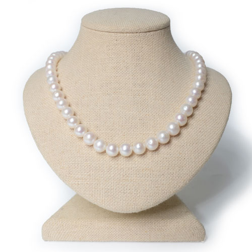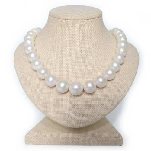 담수 진주 원석으로 구성된 목걸이입니다.