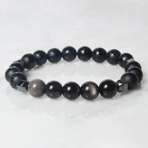 천연 블랙 투르마린 모암 금침수정 사각 심플팔찌입...