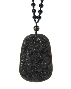 보호의 흑요석 용 옴마니반메훔 목걸이